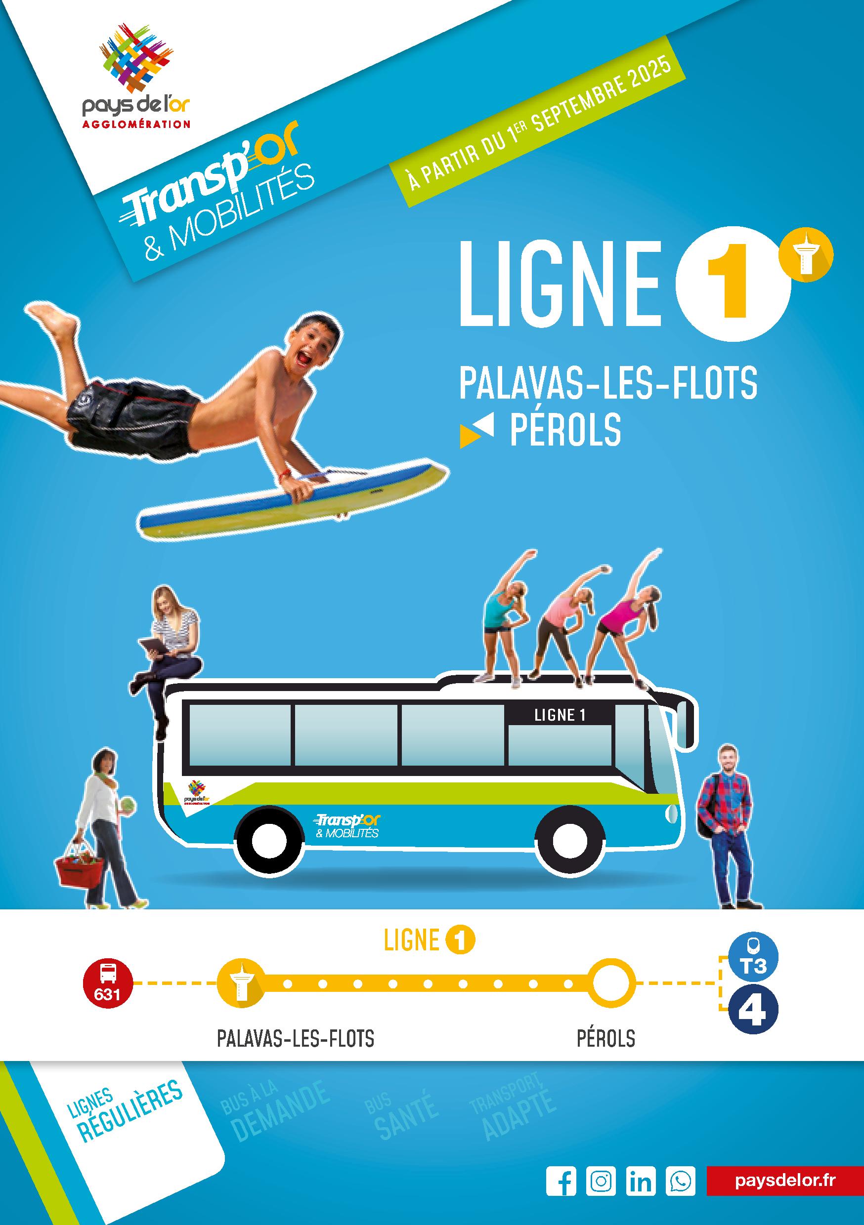 La ligne 1 dessert finement la commune de Palavas-les-Flots jusqu’au terminus de la ligne 3 de tramway (arrêt Pérols – Etang de l’Or).